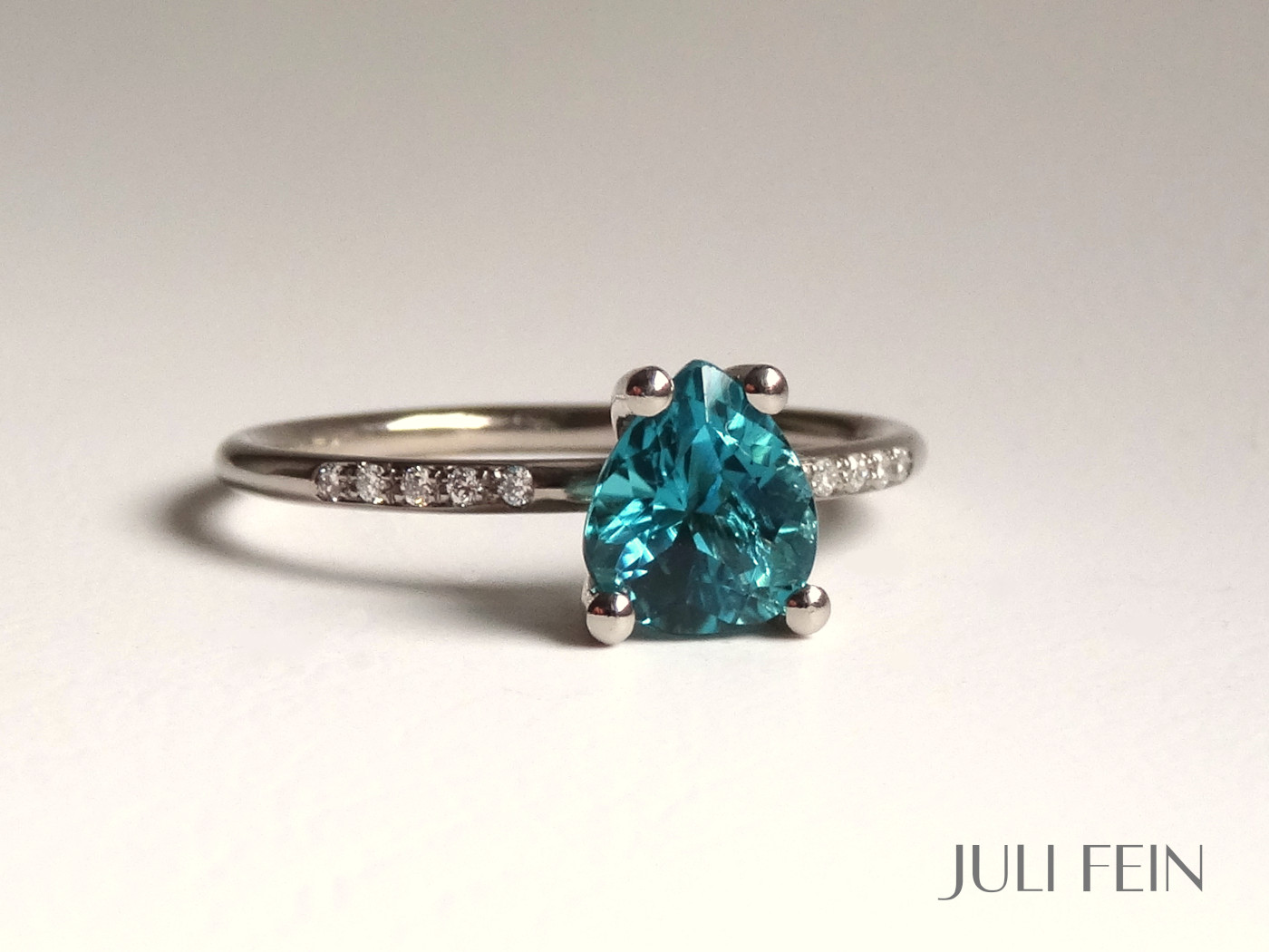 tront ein erstklassiger Turmalin, in präziser geschliffener Tropfenform,